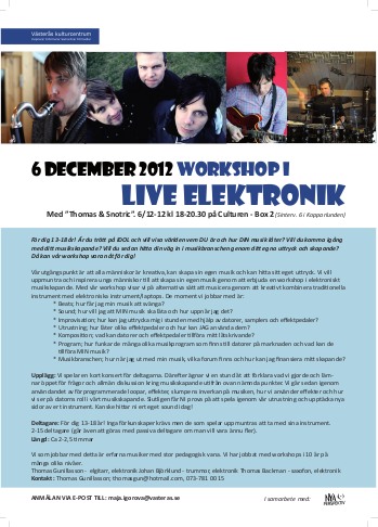 Ensemblen består utöver de svenska musikerna vid detta tillfälle av de internationella gästerna Angharad Davies och Toshimaru Nakamura, med vilka man tidigare samarbetat.